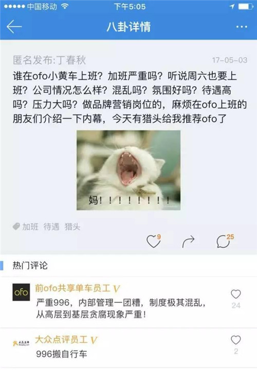 看似無限風光的ofo,背后似乎隱憂重重。繼創(chuàng)始團隊被資本架空的消息傳出之后,ofo內部貪腐的消息也甚囂塵上。近日,實名社交平臺脈脈上,有ofo前員工爆料稱:這個公司從高層到基層,貪腐現象嚴重。