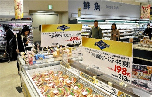 日本零售巨頭AEON旗下的超市從去年11月就開始逐漸調(diào)低包括食品和日用品在內(nèi)的商品價格,今年4月又有254件商品降價。消費者購買頻次更高的牛奶、食用油和冷凍食品降價幅度相對也高,比如菜籽油價格下調(diào)了23.3%。