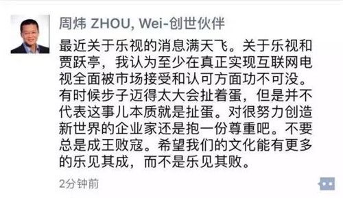 樂(lè)視控股傳播副總裁程時(shí)盛又在微信朋友圈發(fā)文對(duì)此事做了進(jìn)一步澄清。