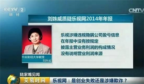 緊接著2015年6月底,曾經(jīng)揭露藍田股份造假的中央財經(jīng)大學教授劉姝威,也質(zhì)疑樂視涉嫌違規(guī)隱瞞公司盈虧信息,在年報中沒有按規(guī)定披露主營業(yè)務利潤的構(gòu)成情況,沒有說明營業(yè)利潤來源。
