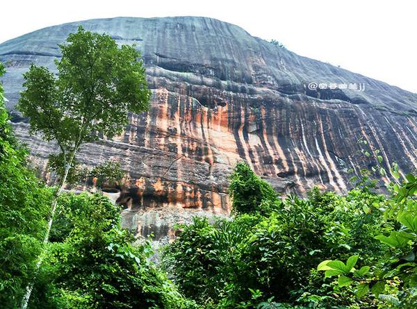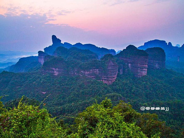 丹霞山之美,是那種把雄奇包裹在雋秀里的含蓄之美。它并不張揚(yáng),遠(yuǎn)望像是一幅優(yōu)美寧靜的水彩畫,顯示出一種優(yōu)雅之美、從容之美和曠達(dá)之美。雖然它的山勢并不高,但它的許多懸崖峭壁,像刀削斧鑿,直指藍(lán)天,無數(shù)奇巖美洞,隱藏于山中,景色相當(dāng)奇麗。