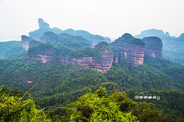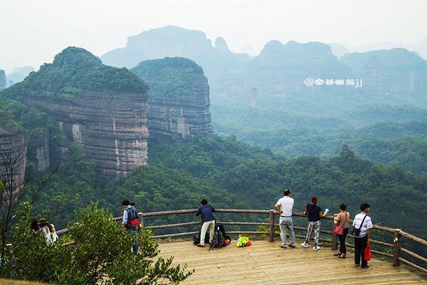 從山腳下乘索道上丹霞山主山之巔—寶珠峰,霧突突的天,在騰空而上的索道上縱目遙望置身于崇山峻嶺之中,不一會(huì)兒就到達(dá)寶珠峰頂,走到東部觀景臺(tái)(韶音亭)遠(yuǎn)眺,群峰疊翠,連綿起伏,“無限風(fēng)光在險(xiǎn)峰”的詩情畫意,得到淋漓盡致的體現(xiàn),讓人感受到世界名山的神奇魅力。