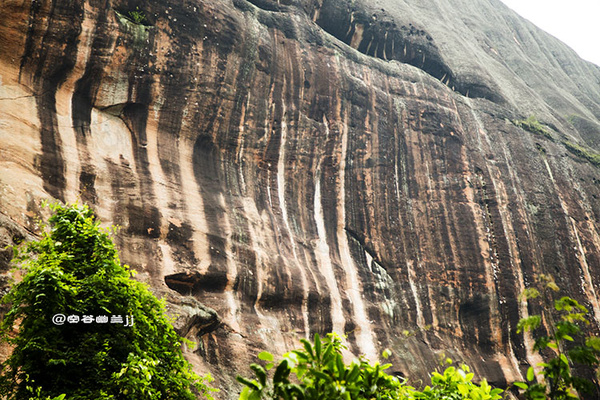 從通泰橋下來后,感覺時(shí)間還早就想去細(xì)美寨那邊看看是否可以上去。路過曬布石,諾大的山體,呈現(xiàn)出一道道的豎紋,好似染房在曬布。