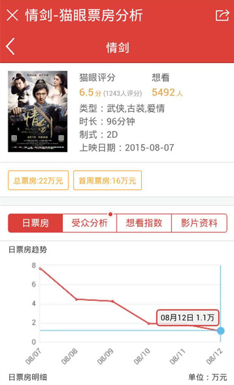 《情劍》預(yù)計(jì)票房8000萬(wàn)最終22萬(wàn)