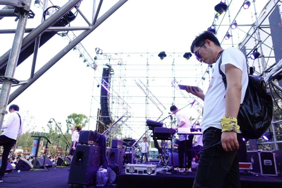 為了讓所有的樂(lè)隊(duì)順利演出,主持人丁適在后臺(tái)一站就是十幾個(gè)小時(shí),曬到鼻尖通紅。