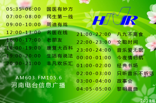 民生零距離,健康新生活!AM603、FM105.6河南電臺信息廣播,全天16檔精彩節(jié)目,敬請關注。