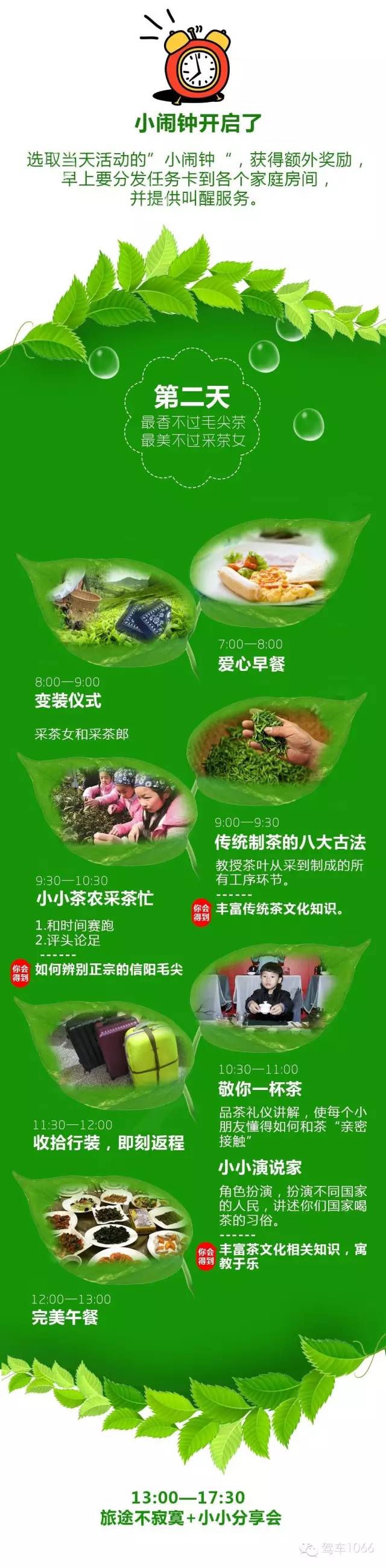 我們不只是單純的采茶,會(huì)有品茶禮儀講解,讓孩子對茶文化有一定的了解,你可以采茶,炒茶,品嘗茶,學(xué)習(xí)茶文化。還會(huì)提供采茶頭巾以及小竹筐,增強(qiáng)活動(dòng)儀式感,讓孩子和家長更好的融入環(huán)境之中。同時(shí)現(xiàn)場有角色扮演互動(dòng)環(huán)節(jié),讓孩子寓教于樂,不僅僅走馬觀花走個(gè)采茶的流程而已。