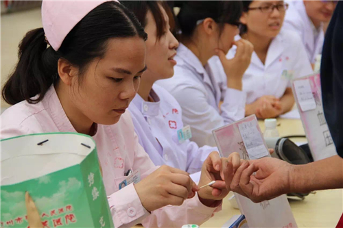 義診現(xiàn)場前來就診的群眾將內科、眼科、中醫(yī)科的專家們圍了個水泄不通,專家們一方面為群眾進行免費測血糖、測血壓,一方面耐心細致地解答他們的問題。當?shù)夭簧俟び讯几锌卣f:“在單位門口就能看上三甲醫(yī)院的專家就是好??!”