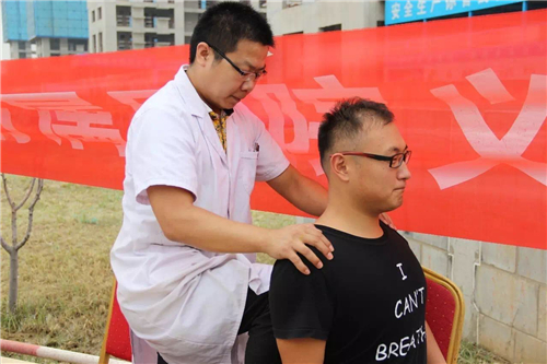 建筑工人平時工作勞累,肩頸都需要放松,看我們的醫(yī)生按摩技術也是灰常得高呢!