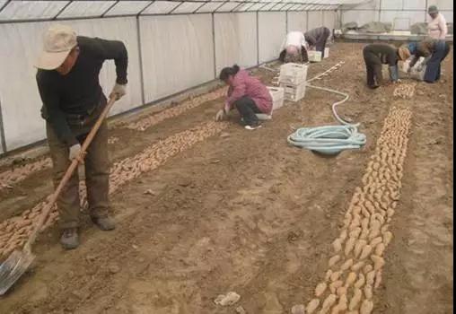 紅薯入棚后,地上澆一次水,棚上蓋上草簾.越冬期棚內(nèi)當(dāng)氣溫降至9 ℃ --10℃時(shí),薯堆上開(kāi)始蓋一層棉墊即可保溫,中、后期,薯堆保持10 ℃ - 12℃, 若薯堆低于此溫,利用睛天拉開(kāi)大棚上草簾,增溫后,草簾拉下,保持10 ℃ - 12℃。