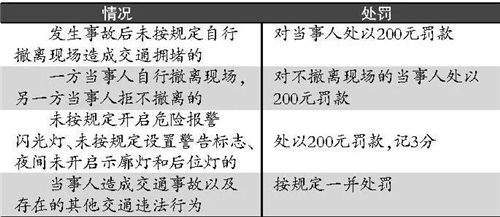 即日起,交管部門將依法加強對“發(fā)生輕微交通事故后,未按照規(guī)定自行撤離現(xiàn)場”的交通違法行為的處罰力度,輕微事故發(fā)生后撤離不及時致堵將被罰款200元,如果未按規(guī)定開啟危險報警閃光燈等,將處以200元罰款,記3分。交管部門表示,對應(yīng)挪車不挪車的事故當(dāng)事人“當(dāng)罰必罰”。