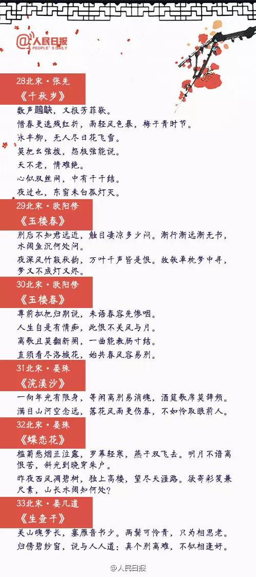 “愿得一心人,白頭不相離”,“從此無(wú)心愛(ài)良夜,任他明月下西樓”,“一川煙草,滿(mǎn)城風(fēng)絮,梅子黃時(shí)雨”……