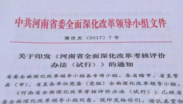 今年7月《河南省全面深化改革考核評價(jià)辦法》正式出臺,表揚(yáng)先進(jìn)、懲戒落后、追效問責(zé),考核評價(jià)辦法成為一支有力的“指揮棒”。
