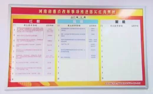 這張省委改革領(lǐng)導(dǎo)小組辦公室內(nèi)的“紅青黑”榜單,生動記錄了各地改革任務(wù)的月度推進(jìn)落實(shí)情況。