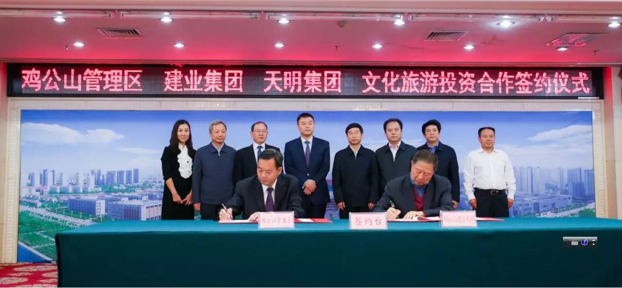 2017年9月2日上午,雞公山管理區(qū)與建業(yè)集團、天明集團在信陽市舉行文化旅游投資會暨簽約儀式。此次簽約項目總面積287平方公里,初步構(gòu)思“一園十三景”,計劃總投資300~500億元。未來,兩家企業(yè)將攜手打造文化旅游項目,助力信陽雞公山脫貧攻堅、建設(shè)美麗鄉(xiāng)村。信陽市市委書記喬新江、市長尚朝陽、建業(yè)集團董事長胡葆森、建業(yè)集團聯(lián)席董事長劉衛(wèi)星、建業(yè)集團副總裁陳劍、天明集團董事長姜明、天明城建集團總裁郭穎、雞公山管委會黨委書記、主任趙安虎等領(lǐng)導(dǎo)出席簽約儀式。