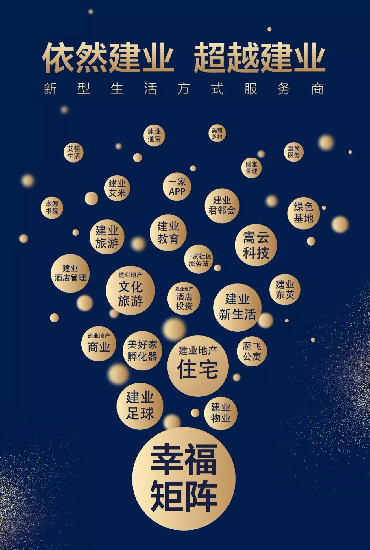 在消費升級、需求多元及互聯(lián)網(wǎng)普及等大背景下,遵循市場變化及客戶需求積極轉(zhuǎn)型,建業(yè)集團于2015年正式開啟由“房地產(chǎn)開發(fā)商”向“新型生活方式服務(wù)商”戰(zhàn)略轉(zhuǎn)型。深度思考“建業(yè)+地產(chǎn)、+文化、+旅游、+農(nóng)業(yè)、+商業(yè)、+教育、+體育、+酒店、+科技、+金融”的大商業(yè)生態(tài)發(fā)展之道。