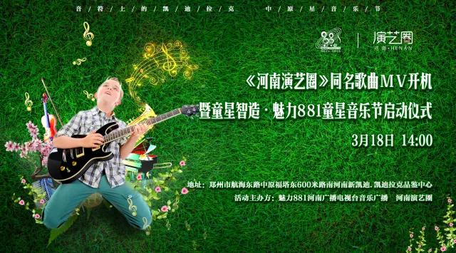 童星智造·魅力881童星音樂節(jié)啟動儀式暨《河南演藝圈》同名歌曲mv開機將于3月18日下午2點河南新凱迪·凱迪拉克品鑒中心舉行,本次活動由魅力881河南廣播電視臺音樂廣播和河南演藝圈主辦,讓我們一起為本土童星音樂藝術加油打CALL ?。?!