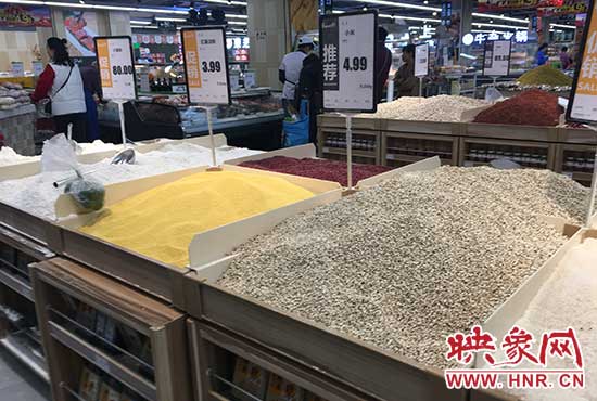 根據(jù)視頻中的信息,記者很快的找到了王亞偉拍攝的米面豆柜臺(tái),只見(jiàn)柜臺(tái)上大米、小米、紅豆、薏仁應(yīng)有盡有,唯獨(dú)沒(méi)有綠豆,原來(lái)綠豆所在的位置,也全部換成了薏仁。向一旁負(fù)責(zé)該柜臺(tái)的工作人員詢問(wèn),對(duì)方表示超市內(nèi)沒(méi)有散裝綠豆,只有成包裝的。