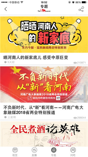 映象網(wǎng)訊(記者 秦雯)看兩會(huì)最熱最新鮮,看百姓關(guān)注,看代表委員風(fēng)采,看各界如何解讀報(bào)告。1月22日起,河南進(jìn)入2018兩會(huì)時(shí)間。大象融媒帶著問題聚焦兩會(huì),帶著答案回應(yīng)網(wǎng)民。其間,大象融媒旗下所屬各媒體大顯身手,貢獻(xiàn)出大量精彩的報(bào)道,直播、高清圖、系列策劃及H5產(chǎn)品等,這些內(nèi)容一經(jīng)推送,就吸引百姓高度關(guān)注,有些板塊更是形成“兩會(huì)熱門話題”和“網(wǎng)絡(luò)熱詞”,被網(wǎng)友分享,引代表委員熱議。