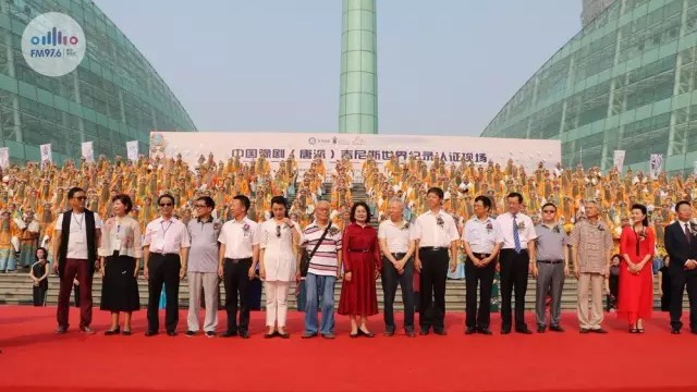 432名專業(yè)演員和票友身穿龍袍同時演唱唐派名劇選段,創(chuàng)造新的吉尼斯世界紀(jì)錄。