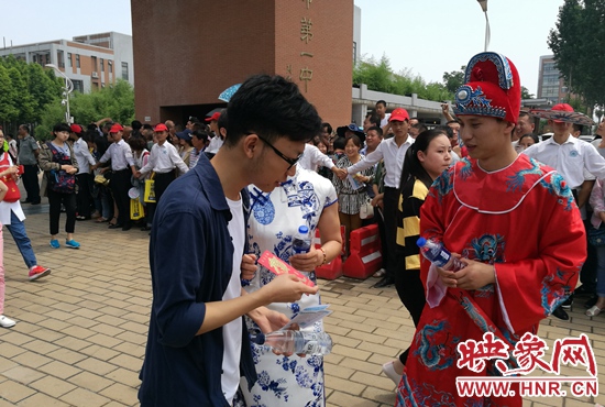 公交車長身穿狀元服為考生送“紅包”、和水