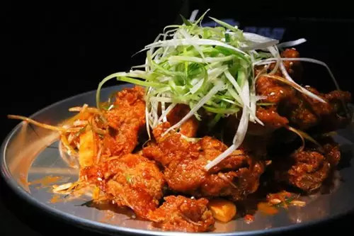 美味的韓國炸雞,被天使朋友們店名很多次了,今天我們就來嘗嘗看:進(jìn)店必點(diǎn)的紅醬炸雞,裹滿醬汁的炸雞色澤誘人,外酥內(nèi)軟的酸甜口味,末了帶著些辣味,搭配蔥絲最佳,還有酸甜口的黑醬炸雞可選。
