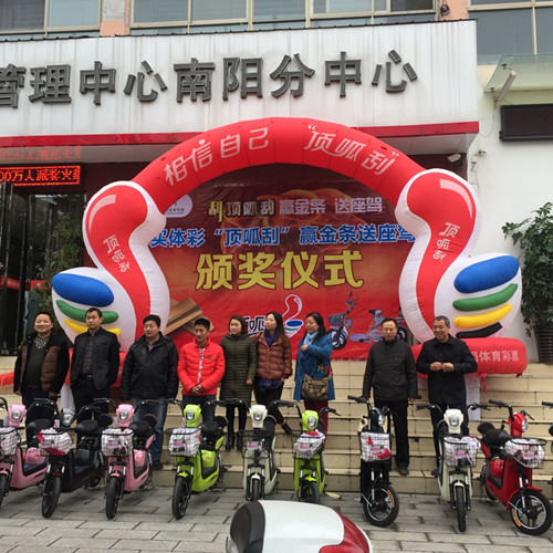 10月29日 河南體彩鶴壁分中心向獲獎(jiǎng)彩民頒發(fā)15輛電動(dòng)車