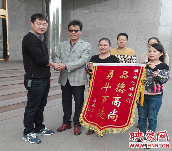 “愛尚寶貝”工作人員為雙匯保衛(wèi)特送上錦旗表達謝意