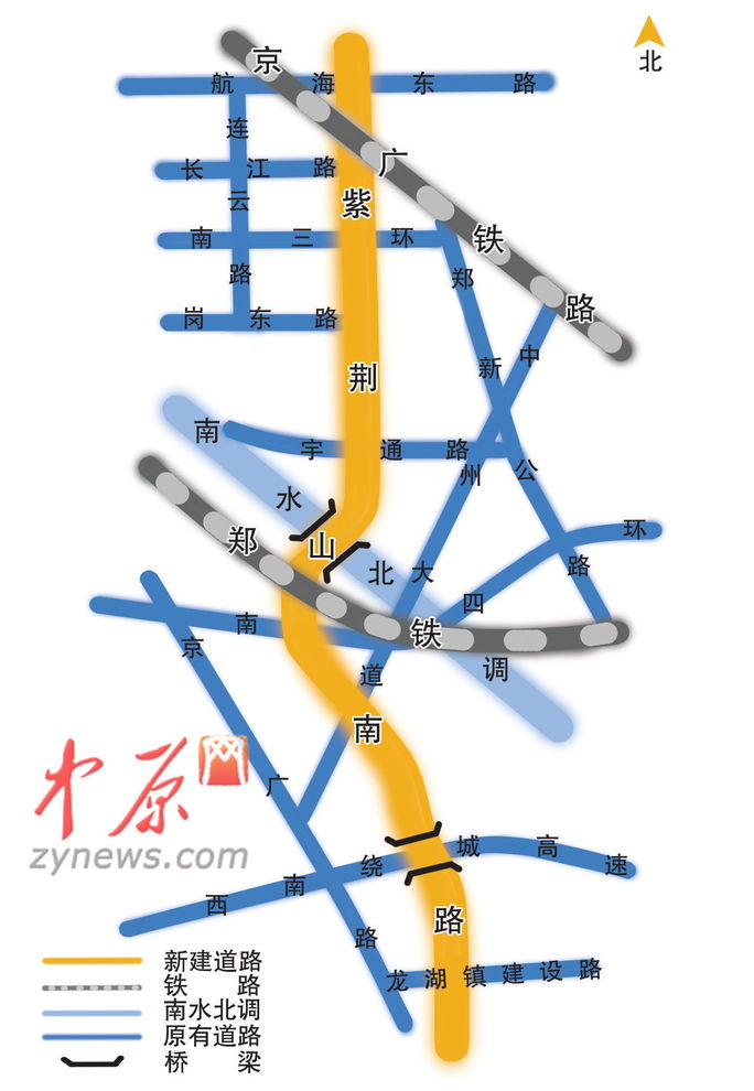 紫荊山南延道路的打通將鄭州市區(qū)與新鄭龍湖緊密連接起來,該工程預(yù)計(jì)到2016年主體完工,屆時(shí),龍湖大學(xué)城的學(xué)生通往鄭州市區(qū)將更為便利,而鄭州市民去往新鄭機(jī)場(chǎng)也多了一條捷徑。