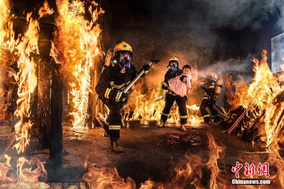 2014年11月6日,四川成都,“烈火中,他們展雄威,救人于危難,豪氣干云天”。當(dāng)晚10時,11·9消防日即將到來,四川省消防總隊與成都商報聯(lián)合推出 “烈火雄心”系列海報式視覺大片,以情景再現(xiàn)的專業(yè)攝影手段,刻畫出消防官兵一個個真實的工作畫卷。整個系列海報由9幅照片組成,涵蓋了車禍救援、火場突圍、高樓救人等多個救援場景,海報中男消防員威武豪氣,女消防員英姿颯爽?!霸?19宣傳日,是想以一種更加直觀、形象的方式,還原消防員真實的生活工作狀態(tài)?!睋?jù)這組大片的主創(chuàng)人員介紹,這次的組圖拍攝,類型包括地震廢墟、車禍困人、高樓營救等各類場景,將更全面的向世人展示不同類型的消防員,以及他們在救援現(xiàn)場背后的感人瞬間,從各個層面展現(xiàn)出消防官兵他們奮不顧身、舍生忘死、一心為民的英雄本色。本組圖片中的角色,都是實實在在的消防員。每張海報的背后,都有著類似的救援故事,讓這些看似熟悉的場景,用海報大片的形式呈現(xiàn)給大家,將事實再現(xiàn)。圖片署名:成都商報-東方IC