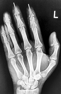 術(shù)后X光顯示,骨骼對(duì)位良好。