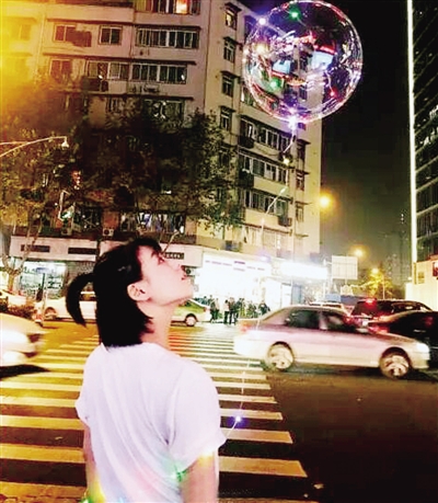 “發(fā)光氣球”構(gòu)造簡(jiǎn)單,充有氦氣的透明氣球表面有一圈LED燈帶,燈帶末尾連著一個(gè)裝有三節(jié)電池的電池盒,電源直接與燈帶相連,可以隨時(shí)控制燈帶的開(kāi)關(guān)。氣球可維持三四天,電量可用10余天,補(bǔ)充一次氦氣需10元。