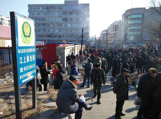 2014年11月15日,星期六,哈爾濱市道外區(qū)北五道街上的集市熱鬧異常,這里是哈爾濱市規(guī)模較大的鳥市之一,除了固定的店鋪外,每到周末就有散戶商販帶著一串裝滿各種鳥的籠子在這里擺攤販賣。