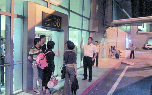 凌晨1點(diǎn)上了一架飛機(jī),3點(diǎn)又被通知下來(lái)。深夜,一些乘客干脆站到候機(jī)樓門(mén)口等待飛機(jī)到來(lái)。