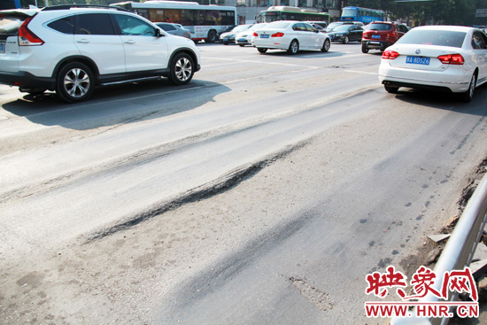 映象網訊(記者 王濤 文/圖)在經過多日氣溫“燒烤”模式之下,鄭州市區(qū)多條馬路也扛不住了,路面變成了“波浪形”。