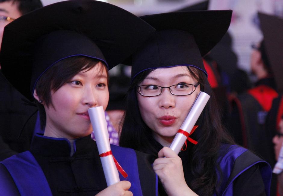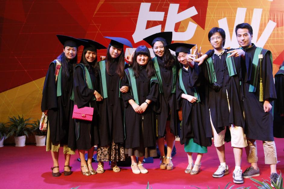 2013年6月26日晚,杭州,中國美院舉行2013屆畢業(yè)典禮,本科畢業(yè)生統(tǒng)一身著新式學位服拍照留念。