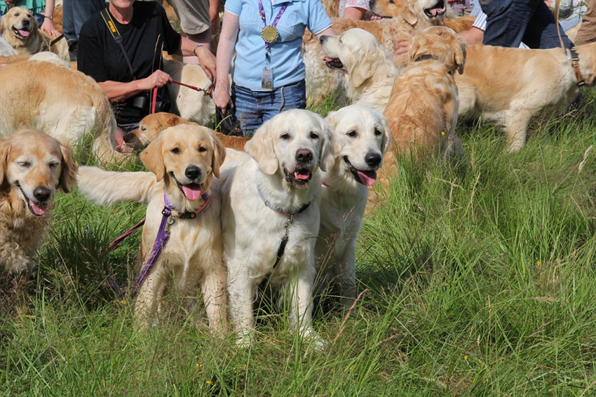 金毛犬,又名金毛尋回犬(Golden Retriever),其友好溫順的個(gè)性深得人們喜愛(ài),在全球累積了不少“金毛粉絲”。據(jù)英國(guó)《每日郵報(bào)》8月13日?qǐng)?bào)道,英國(guó)北部蘇格蘭的金毛俱樂(lè)部在上個(gè)月舉辦了第三場(chǎng)世界級(jí)的金毛犬聚會(huì),邀請(qǐng)全世界的金毛飼養(yǎng)者帶著他們可愛(ài)的寵物——金毛犬,前來(lái)共享這一歡樂(lè)的時(shí)刻。而最終參加這個(gè)聚會(huì)的,有222只金毛犬。