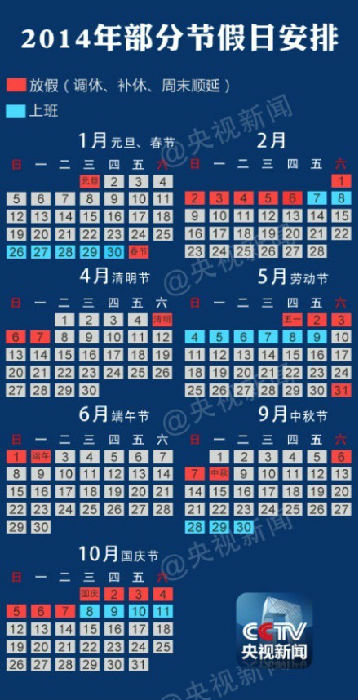 昨日,2014年節(jié)假日放假安排公布。消息發(fā)布后,已有網(wǎng)友迅速根據(jù)新的放假安排計算出2014拼假攻略,總共只需10天年假,即可將2014的元旦、春節(jié)、五一和十一假期變長。