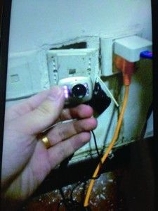 4月26日17時許,23歲的男子張成在合肥市合巢路沁園賓館攜妻子入住該賓館205房間時,無意間發(fā)現(xiàn)墻壁插座內(nèi)暗藏針孔攝像頭,正對著大床偷拍。