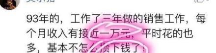 93年,做了3年銷(xiāo)售,月收入接近10000,但平時(shí)花的也多,基本不怎么攢錢(qián)。