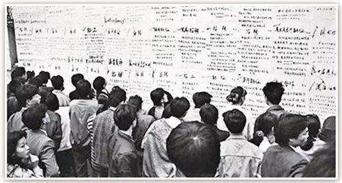 1988年,務(wù)工人員在海南省海口市三角池人才墻前找工作。黃一鳴攝