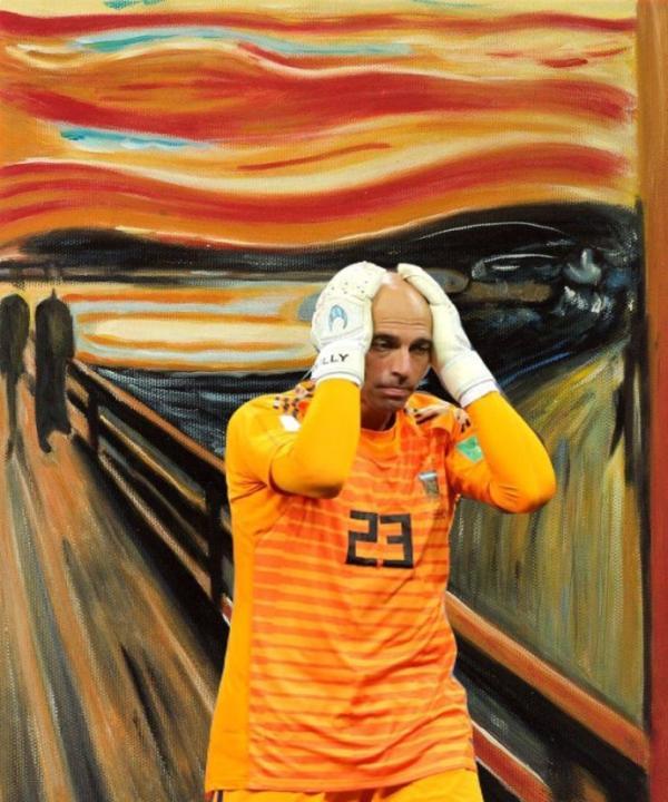 而阿根廷呢?大腳解圍掄空的奧塔門迪、本方禁區(qū)玩火的塔利亞菲科、還有莫名在門前挑傳失誤,給對手送上大禮的門將卡巴列羅……