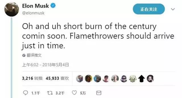 每日經(jīng)濟(jì)新聞(微信號:nbdnews)記者注意到,今年5月初,馬斯克還自信滿滿地表示,他將“很快燒光做空者”。