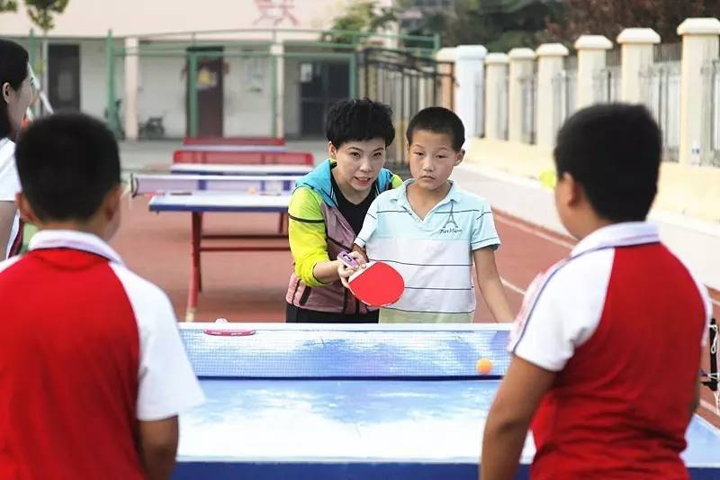 鄧亞萍與小隊(duì)長切磋球技 關(guān)注體育教育基礎(chǔ)發(fā)展