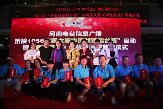 “第六屆中原戲迷擂臺(tái)賽”將舉辦15場(chǎng)賽事演出,包括:12場(chǎng)月冠軍賽演出、2場(chǎng)半決賽、1場(chǎng)全年總決賽。正式啟動(dòng)前,通過(guò)信息廣播《樂(lè)齡有戲》直播節(jié)目以及微信平臺(tái)參與,已經(jīng)產(chǎn)生了30名周冠軍,他們都來(lái)到了啟動(dòng)儀式現(xiàn)場(chǎng),被授予周冠軍的證書(shū)。