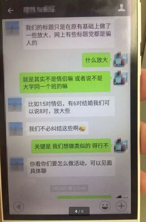 面對記者對“一個班15對情侶”提出的諸多疑問,對方直接回答,“媒體報道說有,就一定是這么回事?!薄拔覀儾槐卦偌m結(jié)這些?!彼髞沓姓J有些標題在原有的基礎(chǔ)上做了一些放大,“比如15對情侶,有6對結(jié)婚我們可以說8對,放大些?!?/font>