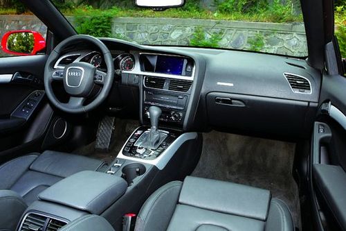 奧迪A5 Cabriolet 2.0T雖然身為一款敞篷跑車,但其內(nèi)飾設(shè)計卻與奧迪轎車的整體風(fēng)格完全一致。在這個座艙里,我們看不到大面積的金屬裝飾,也找不到刺激駕駛者腎上腺素分泌的夸張設(shè)計。黑色依然是座艙的核心色調(diào),各種豪華配置告訴我們——這并不是一款過分追求動態(tài)性能的車,舒適才是它的首要任務(wù)。駕駛臺上,MMI多媒體互動系統(tǒng)依舊是所有座艙系統(tǒng)的核心。與上一代系統(tǒng)相比,新一代MMI多媒體交互系統(tǒng)的改進(jìn)包括3個方面:第1,硬盤驅(qū)動的導(dǎo)航系統(tǒng)功能更加強(qiáng)大;第2,屏幕顯示和圖像處理能力均有提升;第3,操作按鍵的設(shè)計更加人性化,便于用戶靈活自如地使用各項功能。