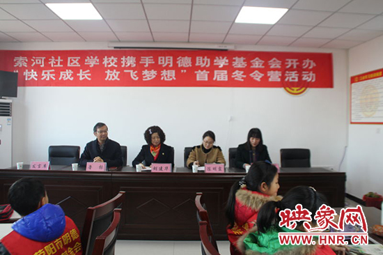 映象網(wǎng)訊(記者 王文凱 通訊員 尚瑩 蔣艷艷)1月20日上午,以“放飛夢想 快樂成長”為主題的滎陽市索河中心校冬令營活動,在索河辦廣場社區(qū)舉行開營儀式。滎陽市僑聯(lián)主席胡建華、滎陽市教體局職教科科長魯標(biāo)、辦事處副主任陳明霞、索河中心校校長馬叢敏、西街小學(xué)30名留守兒童、家長代表以及13位志愿者老師參加。