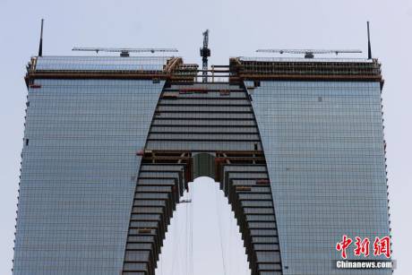 9月2日,位于江蘇蘇州工業(yè)園區(qū)的東方之門(mén)幕墻安裝進(jìn)入收尾階段,頂部幕墻正在施工中,幕墻穹頂即將封閉。