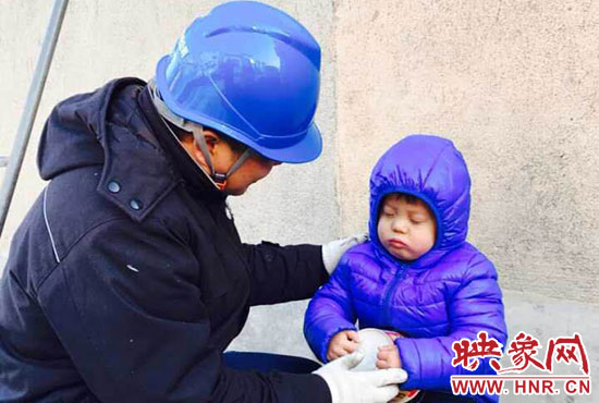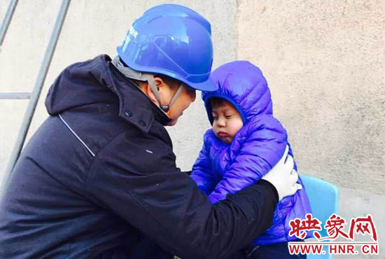 “你兒子睡著了,快下來吧。”11月23日,正在架電線的新密供電公司岳村供電所員工李磊聽到同事叫他。李磊的兒子叫李昕龍,今年5歲,由于李磊妻子不在家,幼兒園又因雪放假,沒人照看李昕龍,李磊只好帶著他去上班。正在安裝智能表的李磊,聽到同事叫他,趕緊朝下一看,兒子在冰天雪地里已經(jīng)睡著了。他急忙從梯子上下來,把孩子抱起來,由于剛睡著,孩子竟然沒有醒來,他只好繼續(xù)抱著孩子睡覺。
